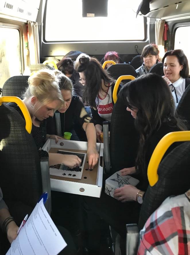 Dort erlebten wir zunächst eine spannende Stunde in den Escape Rooms von „Final Escape“. In vier verschiedenen Räumen rätselte jeweils ein Team von 4 Personen, um sich entweder aus den Fängen eines gemeinen Puppenspielers zu entkommen, einen Piratenschatz zu finden, einen Gemäldediebstahl aufzuklären oder einen Trabi für ein Wüstenrennen startklar zu machen. Die Teams wurden zuvor auf der Busfahrt gelost und um sich „warm zu rätseln“, gab es ein Zahnmedizin- Quiz und ein anschließendes Puzzle. Das fertig zusammengesetzte Bild ergab den Zielort für das anschließende Abendessen. Dieses fand auf dem Fernsehturm statt, welcher einen tollen Blick über die vielen Lichter der Stadt ermöglichte. Während des sehr leckeren 3-Gänge-Menüs konnte ausgiebig über die aufregenden Rätsel diskutiert, einfach nur geplaudert oder die hell erleuchteten Sehenswürdigkeiten der Stadt bestaunt werden.